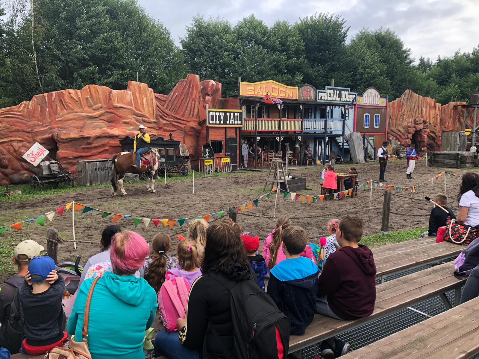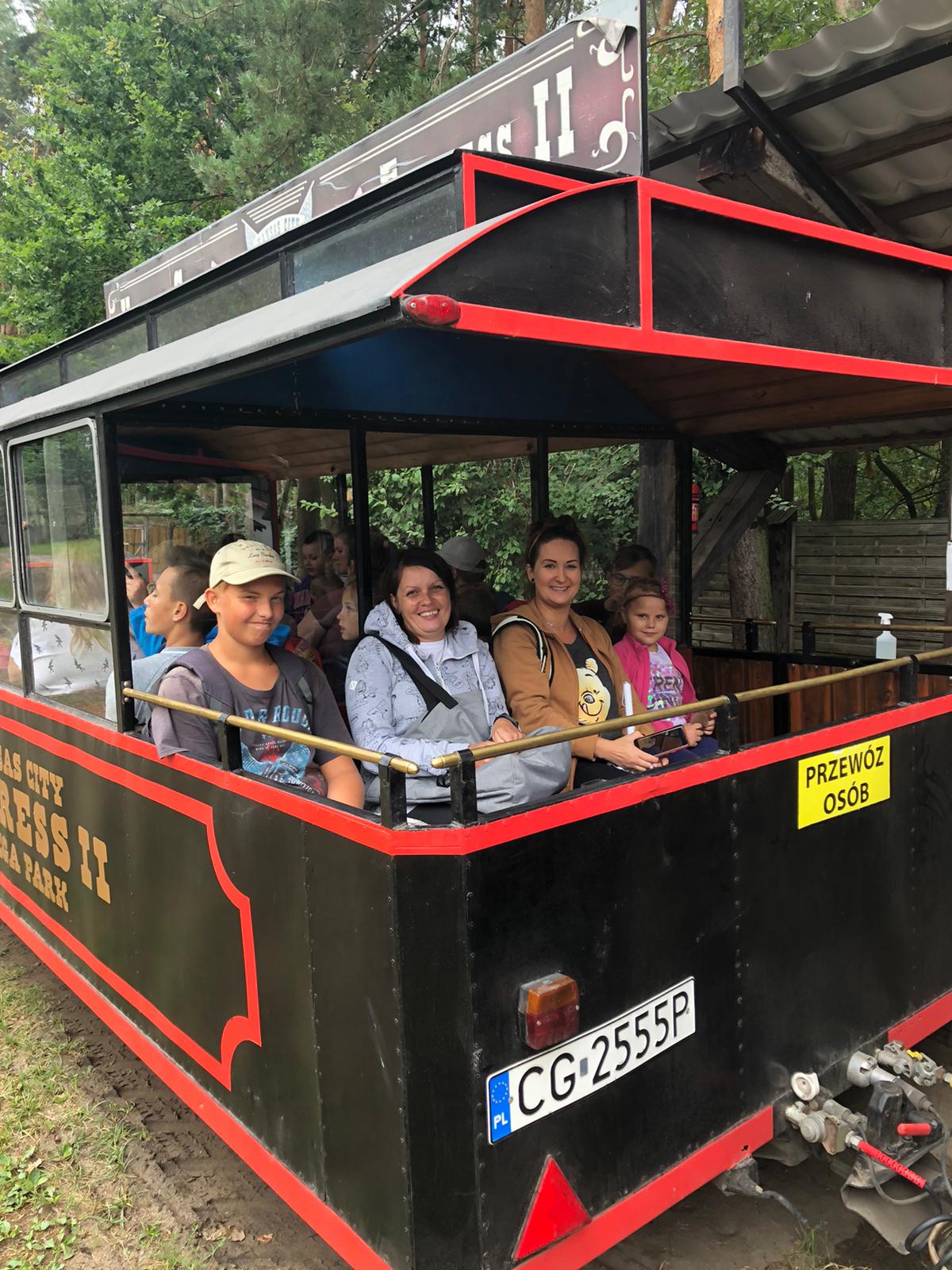 Nasi podopieczni wraz z przewodnikiem mieli okazję zwiedzać mini zoo, oglądali pokazy westernowe z elementami pirotechniki, z bliska przyglądali się okazom w parku dinozaurów. Wiele radości sprawił uczestnikom także czas w Lunaparku, gdzie mogli skorzystać z zabawy w kulkach, autodromu, dmuchańców.