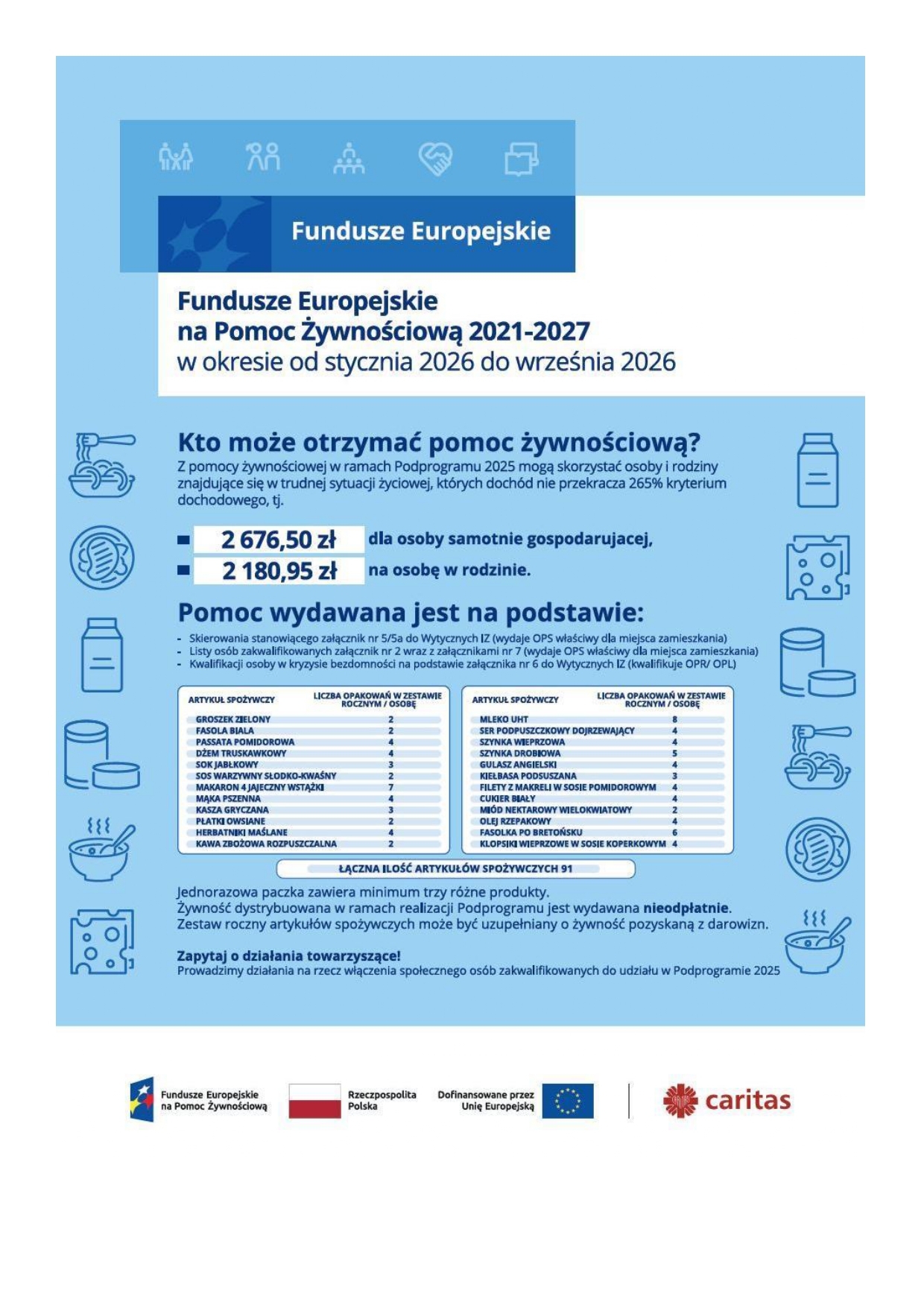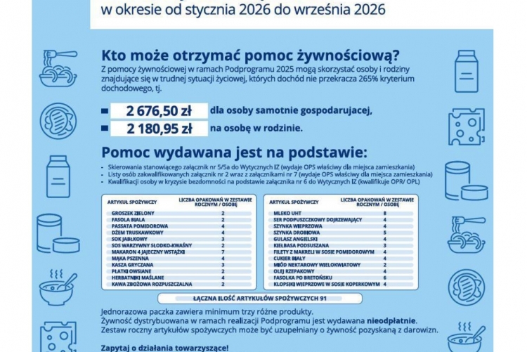 Fundusze Europejskie na Pomoc Żywnościową 2021-2027 w okresie od stycznia 2026 do września 2026