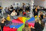 Podczas spotkania najmłodsi uczestnicy projektu zostali wprowadzeni w świat jesiennej aury poprzez gry i zabawy tematyczne, które miały na celu rozwijanie twórczej aktywności dzieci, pobudzenia otwartości i spontaniczność w wyrażaniu własnych myśli, pomysłów i emocji, zaspokojenia naturalnej potrzeby ruchu dziecka, rozwijanie umiejętności współpracy z rówieśnikami.