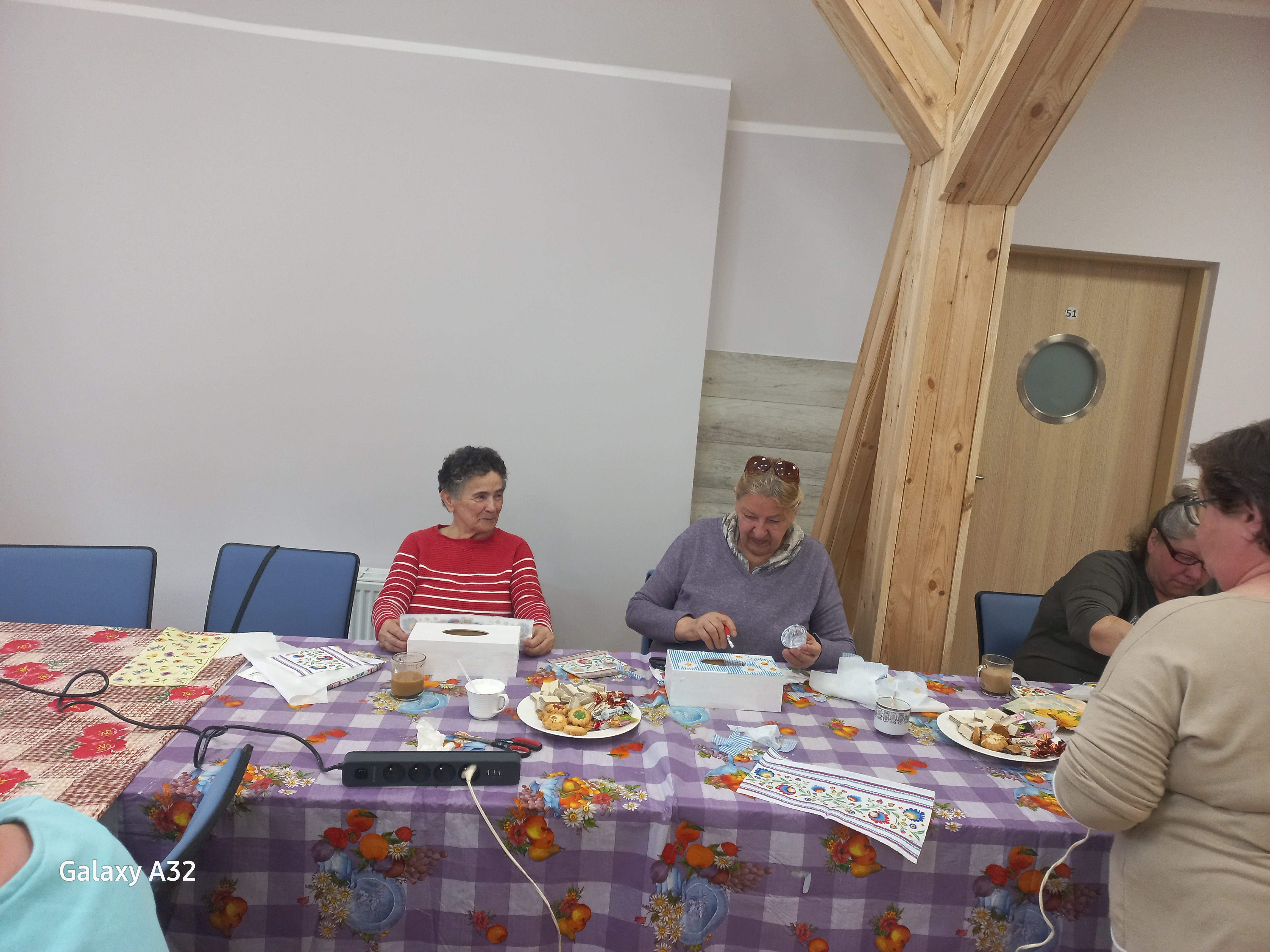 W trakcie spotkania panowała przyjazna i radosna atmosfera. Nie zabrakło również dobrego humoru i żartów. Dzięki takim przedsięwzięciom uczestnicy mogą integrować się ze środowiskiem lokalnym oraz zapobiec wykluczeniu społecznemu. Spotkanie to miało oddziaływanie o podłożu psychologicznym. Regularne praktykowanie rękodzieła może przynieść wiele korzyści dla zdrowia psychicznego i emocjonalnego, dlatego warto eksperymentować z różnymi technikami i znaleźć tę, która najlepiej odpowiada naszym potrzebom. Dlatego też warto rozważyć wprowadzenie rękodzieła jako części codziennej rutyny w celu redukcji stresu i napięcia oraz poprawy ogólnego samopoczucia.