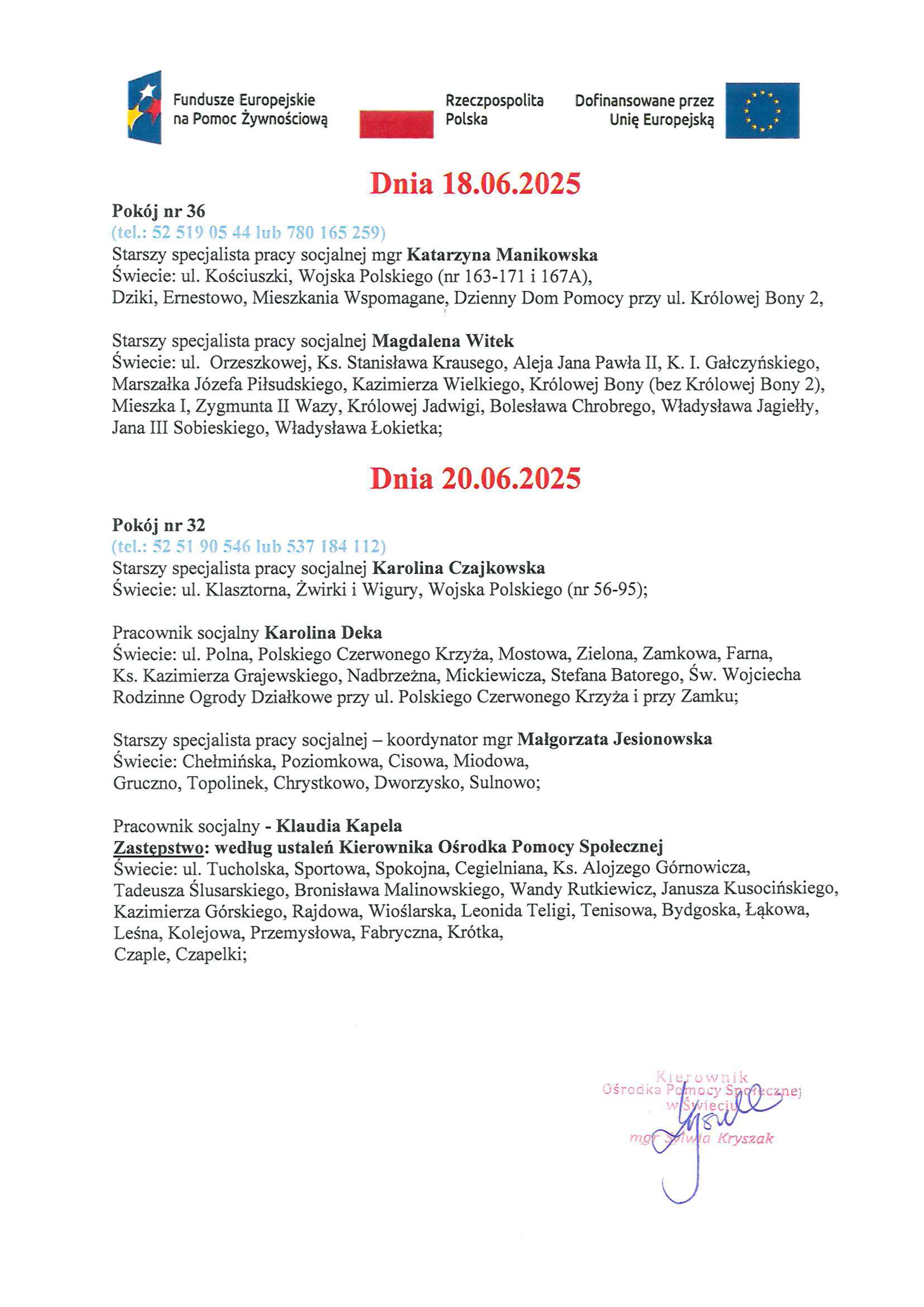 od 16.06.2025 r. do 20.06.2025 r.