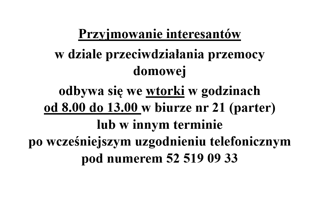 po wcześniejszym uzgodnieniu telefonicznym pod numerem 52 519 09 33