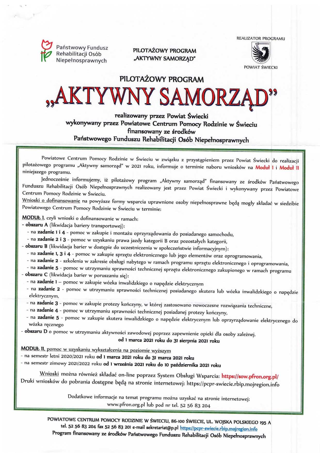 Ośrodek Pomocy Społecznej w Świeciu otrzymał 150 zestawów „Pierwszej Pomocy dla Seniora” w skład, których weszły tzw. „Koperty Życia”, magnesy informacyjne, gdzie zlokalizowana jest Koperta Życia, pojemniki na leki oraz opaski silikonowe SOS.