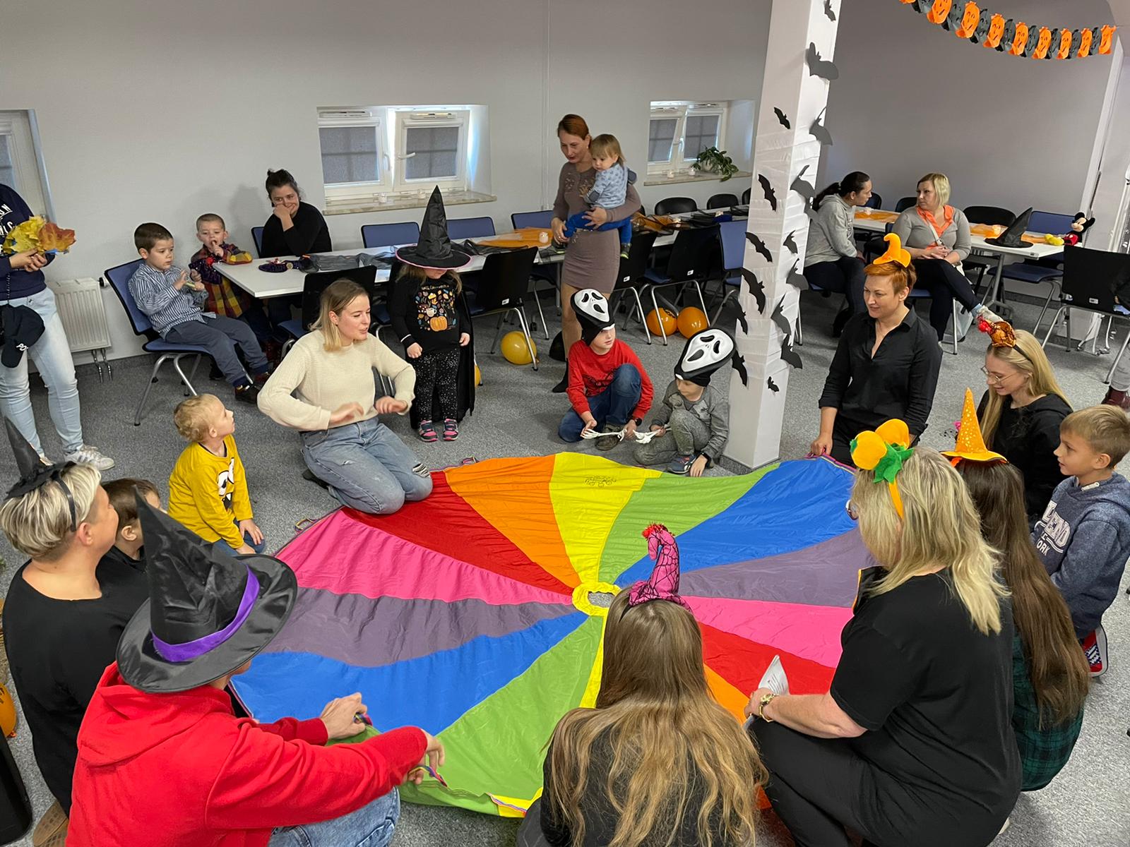 Podczas spotkania najmłodsi uczestnicy projektu zostali wprowadzeni w świat jesiennej aury poprzez gry i zabawy tematyczne, które miały na celu rozwijanie twórczej aktywności dzieci, pobudzenia otwartości i spontaniczność w wyrażaniu własnych myśli, pomysłów i emocji, zaspokojenia naturalnej potrzeby ruchu dziecka, rozwijanie umiejętności współpracy z rówieśnikami.