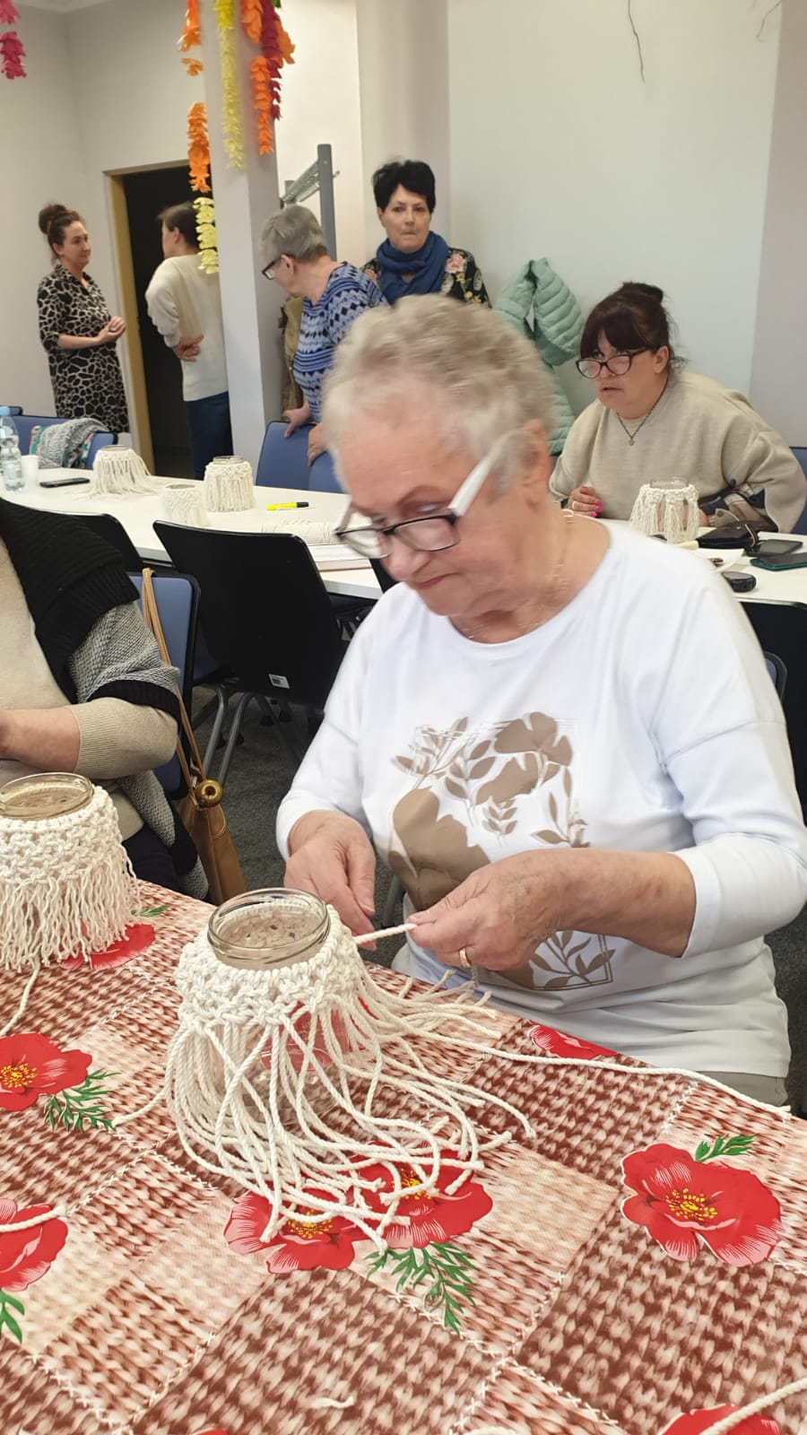 W dniach 08.04.2022r. oraz 22.04.2022r. Ośrodek Pomocy Społecznej w Świeciu zorganizował Warsztaty rękodzielnicze z przygotowywania makram. W zajęciach prowadzonych przez zaproszonych gości – panią Ewę Szymańską i Agnieszkę Jędrzejewską, na co dzień zajmujących się warsztatami rękodzielniczymi, wzięli udział uczestnicy projektu socjalnego ,,Ja jestem, Ty jesteś, My jesteśmy tacy sami”. Osoby starsze z wielkim entuzjazmem oraz zainteresowaniem tworzyły dzieła ze sznurka. Podczas warsztatów uczestnicy mogli skorzystaćz przygotowanego słodkiego poczęstunku i wypić pyszną kawę. Działanie to służyło integracji osób samotnych, w okresie inwolucji starczej, jak i było przestrzenią do wspólnego działania i rozmów. Uczestnicy nabyć mogli nowe umiejętności. Uczestnictwo w przygotowanych warsztatach przyczyniło się do dobrostanu psychicznego uczestników, sprzyjało również pozytywnej samoocenie.