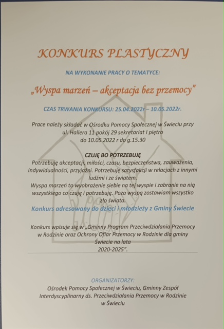 Konkurs "Wyspa marzeń - akceptacja bez przemocy"
