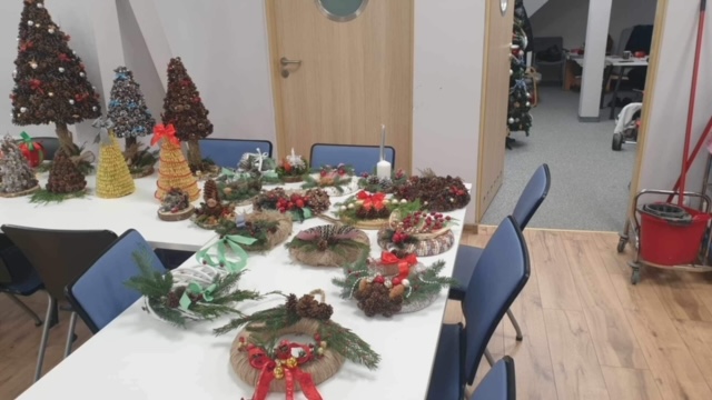 W okresie od września do grudnia 2023r. Ośrodek Pomocy Społecznej w Świeciu, dla uczestników projektu socjalnego pt. ,,Młodzi Duchem”, organizował regularne warsztaty świątecznego rękodzieła. Dla uczestników przygotowano wszystkie niezbędne materiały dekoracyjne, dzięki którym osoby w okresie inwolucji starczej, zagrożone wykluczeniem społecznym przygotować mogły przepiękne bożonarodzeniowe ozdoby. W świątecznej, radosnej atmosferze i wielkim zaangażowaniu przygotowano wiele dzieł sztuki. Dla uczestników przygotowano również słodki poczęstunek. Przygotowane rękodzieło przekazane zostało na cel charytatywny dot. zbiórki na zmagającego się z chorobą chłopca.