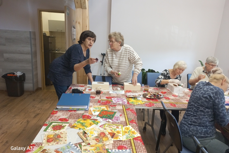 z decoupage dla uczestników projektu socjalnego „ Młodzi Duchem”. Spotkanie zostało przeprowadzone przez zaproszonego gościa, Panią Annę Mokwę