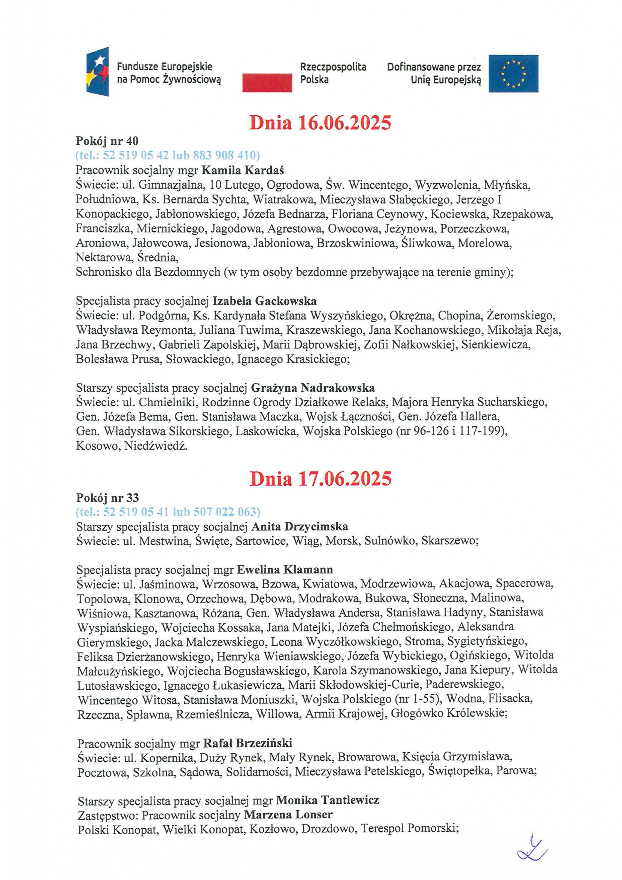 od 16.06.2025 r. do 20.06.2025 r.